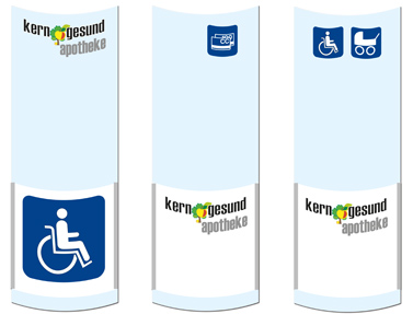 Wenn eingeplant, können spezielle Arbeitsplätze für Kunden mit Behinderung, schwangere Frauen, "Kinderwagen-Lenker" oder für Kreditkartenbezahlung mit einfachen Aufklebern gekennzeichnet werden.