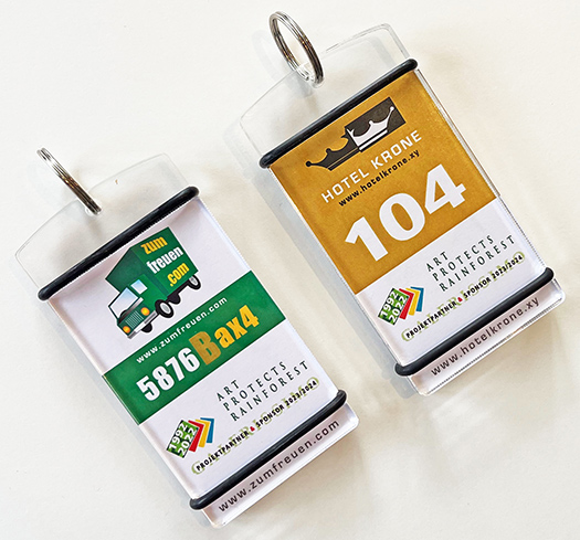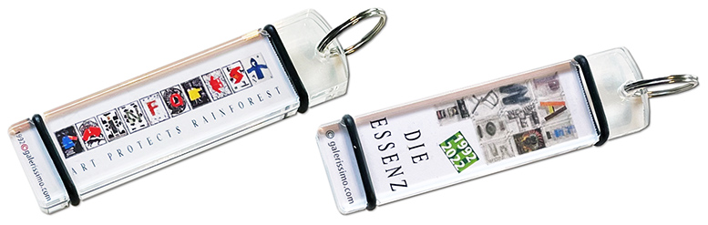 inkl. Gestaltung / DTP, beidseitig vierfarbigem Druck der Einlagekärtchen und Schlüsselanhänger* im Scheckkartenformat pro 10 Stück € 250,-.